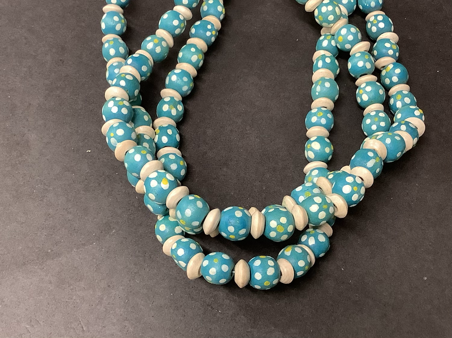 10mm wood round and rondelle blue/cream with flower 14875