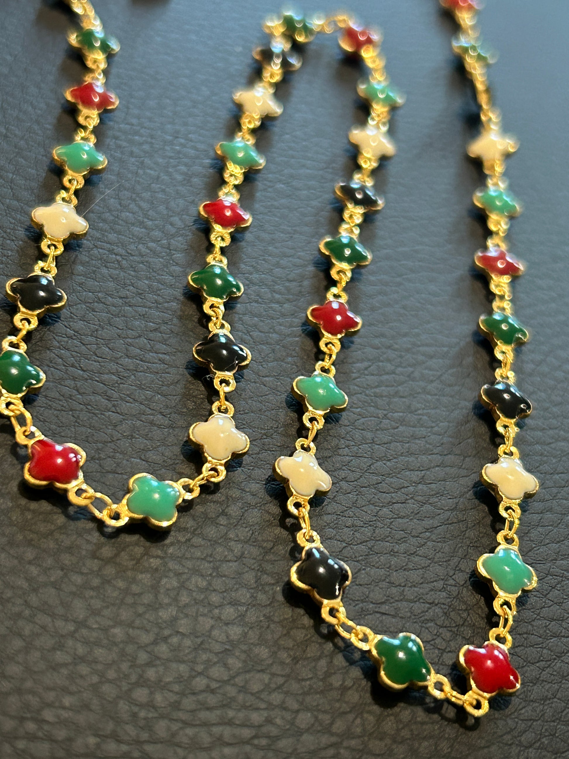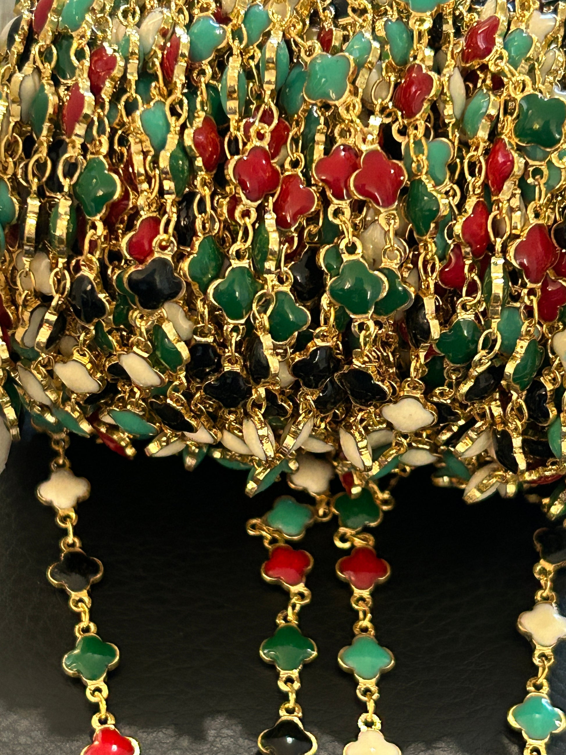 14k multicolor clover 6mm chain, by feet non tarnish. Cadena 14k multicolor conector, 6mm por pie.