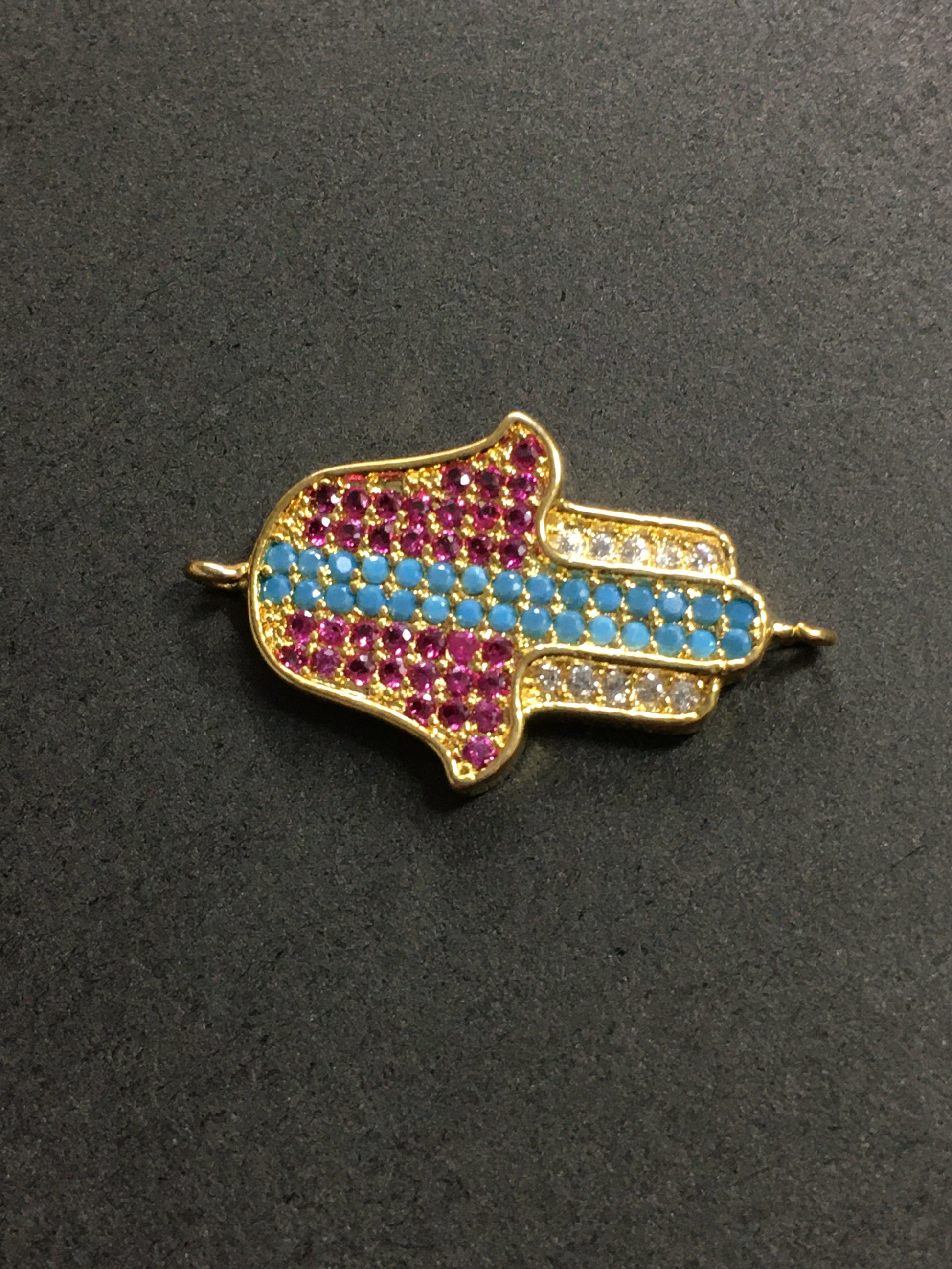 25mm Hamsa Hand Blue and Pink Pave Connector 16319