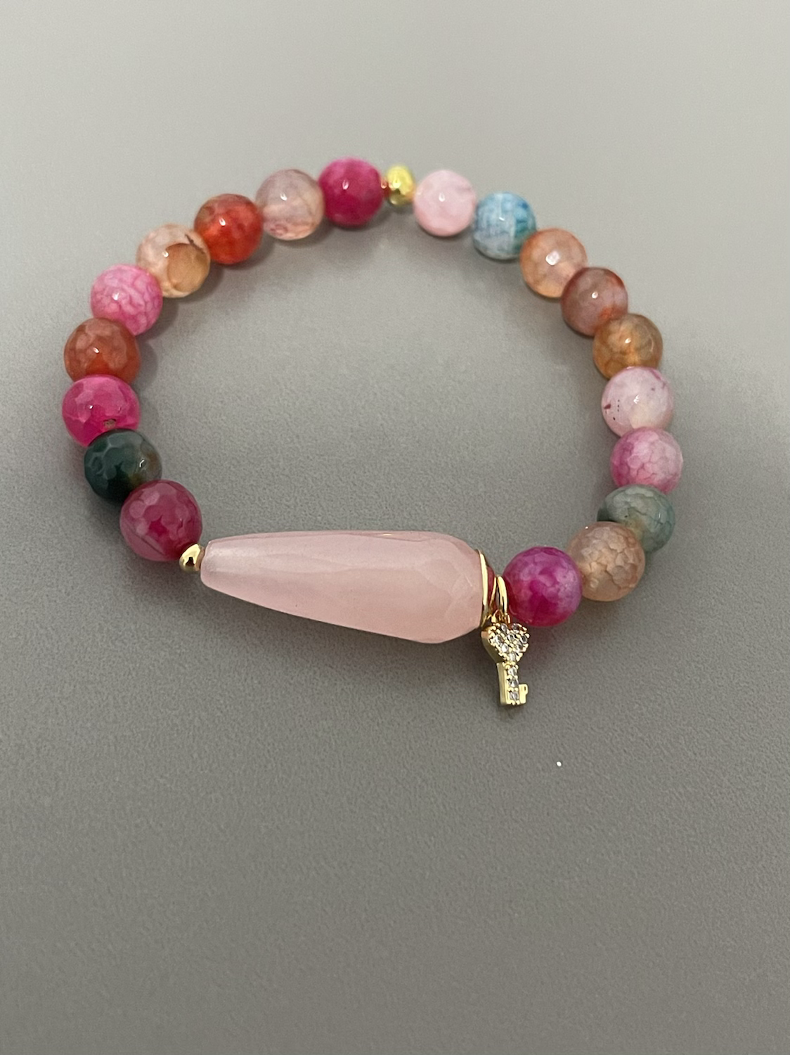 - The kit includes mixed agate beads, a centerpiece stone, and a charm.
